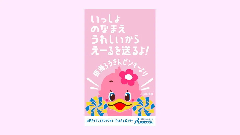 公式スポンサーとして、スポンサードゲーム「東海ろうきんナイター」の実施にてホームゲームを盛り上げたり、マスコットのドアラとコラボしたポスターや動画制作するなど、年間を通じてドラゴンズを応援しています。
