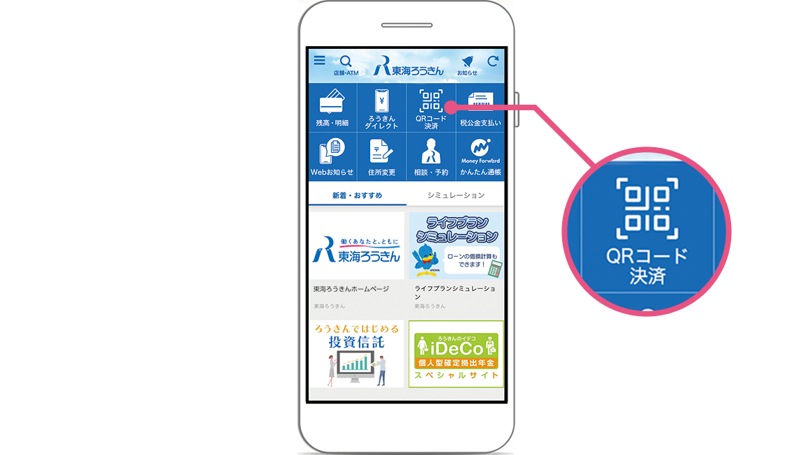 「ろうきんアプリ」からスムーズにQRコード決済サービスを利用できます。