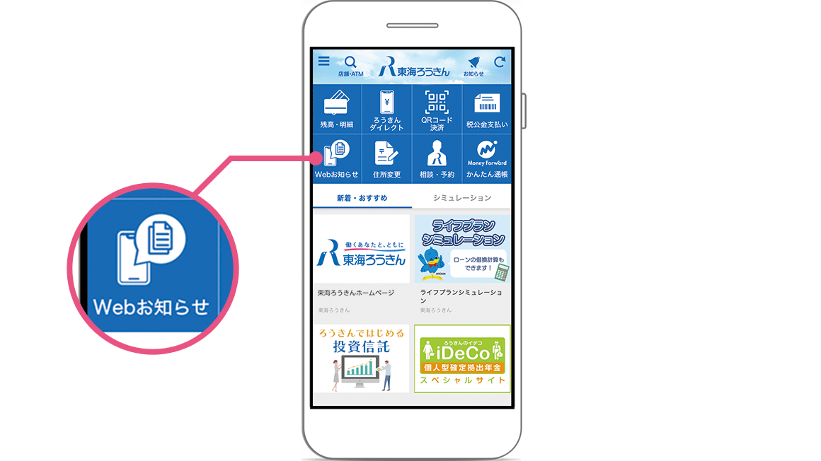 「ろうきんアプリ」のトップ画面からも受け取ったお知らせ一覧を確認できるので、ぜひチェックしてみてください。