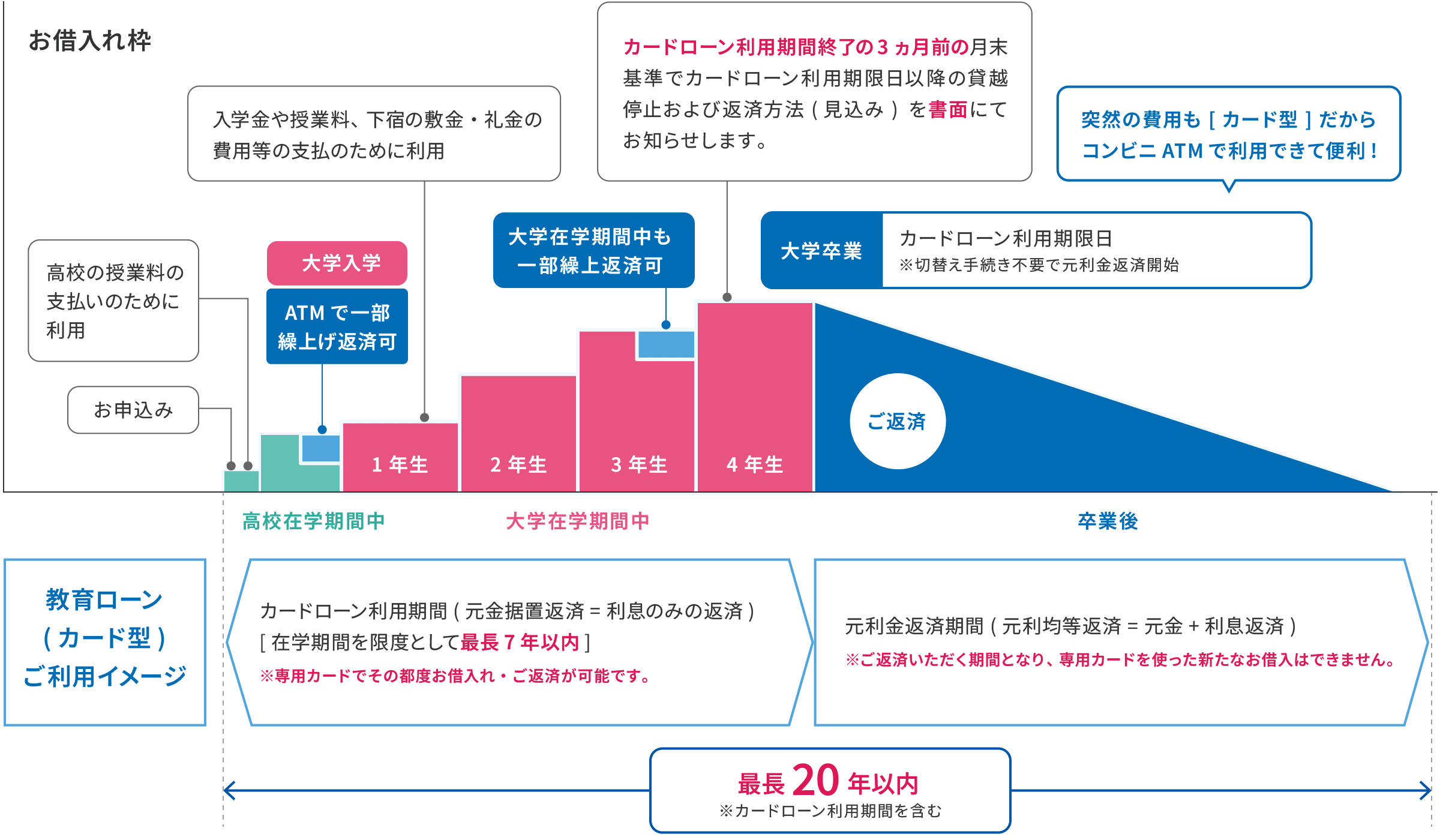 カードローン利用期間は在学期間中(最大7年間)となります。