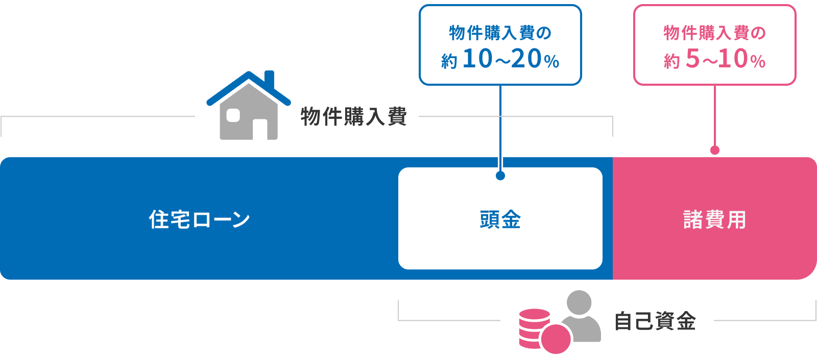 - 総費用のうち約10%~20%程度を自己資金でまかなうことが望ましいといえます。