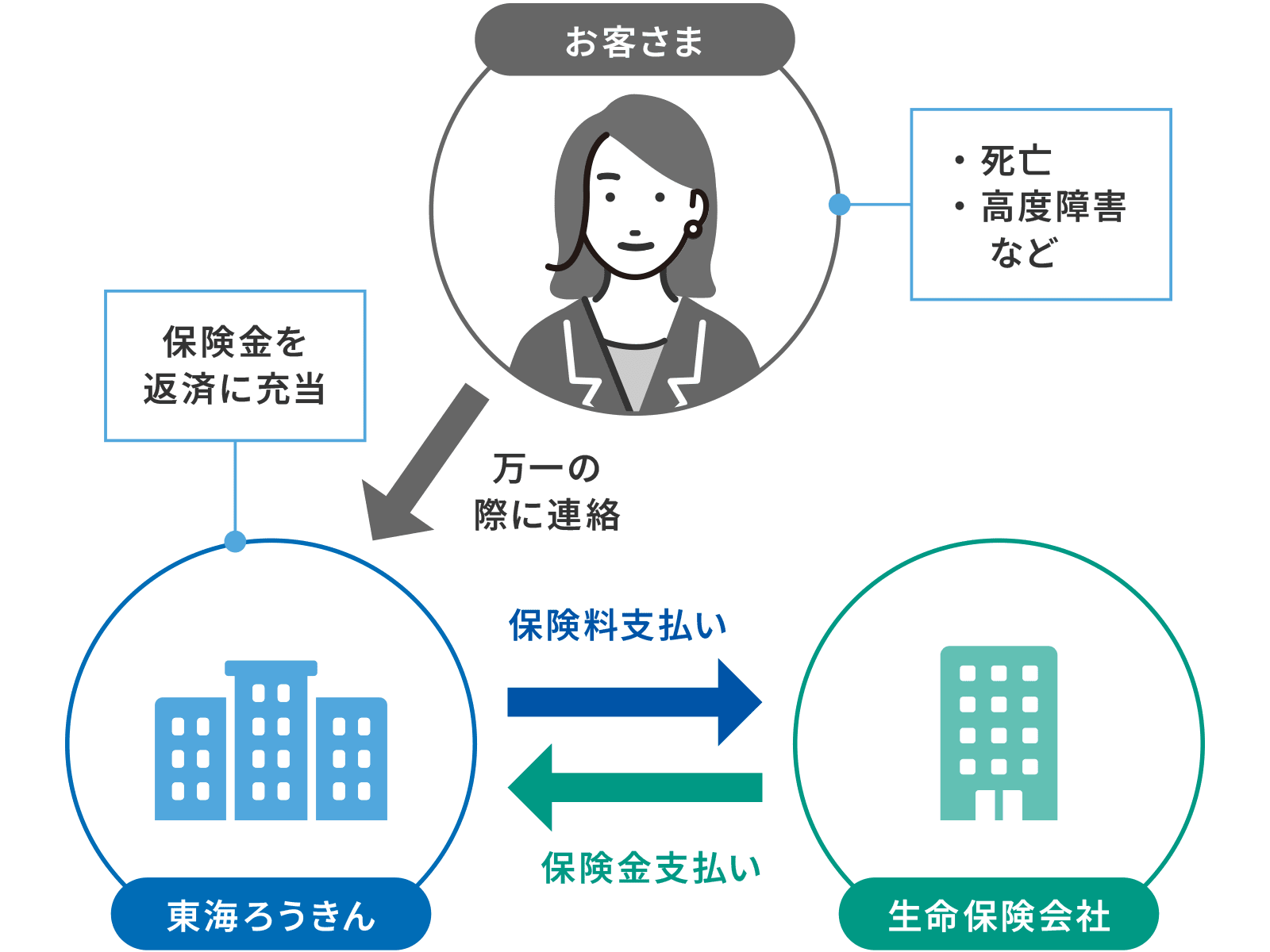 住宅ローンお借入れのお客さまが高度障がいやお亡くなりになった場合のお手続きについては、お取引店にお問い合わせください。