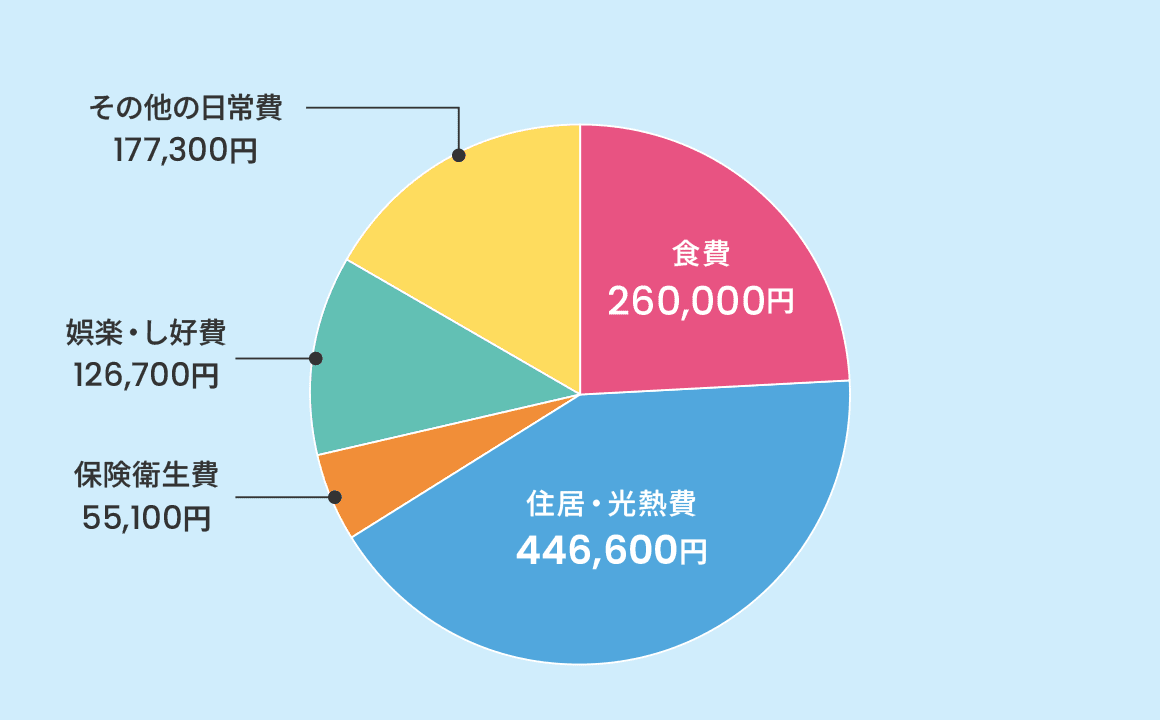 4年制私⽴⼤学(昼間部)、⼀⼈暮らし(アパート等)の場合