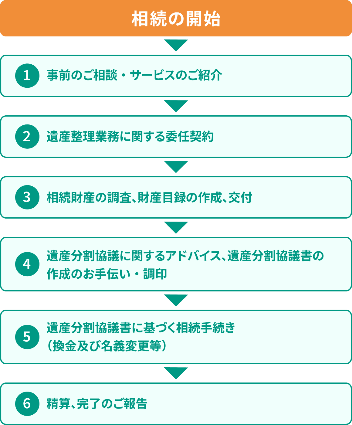 - 戸籍謄本など必要書類の取得、司法書士や税理士の紹介など一括して相続手続きをまかせたい