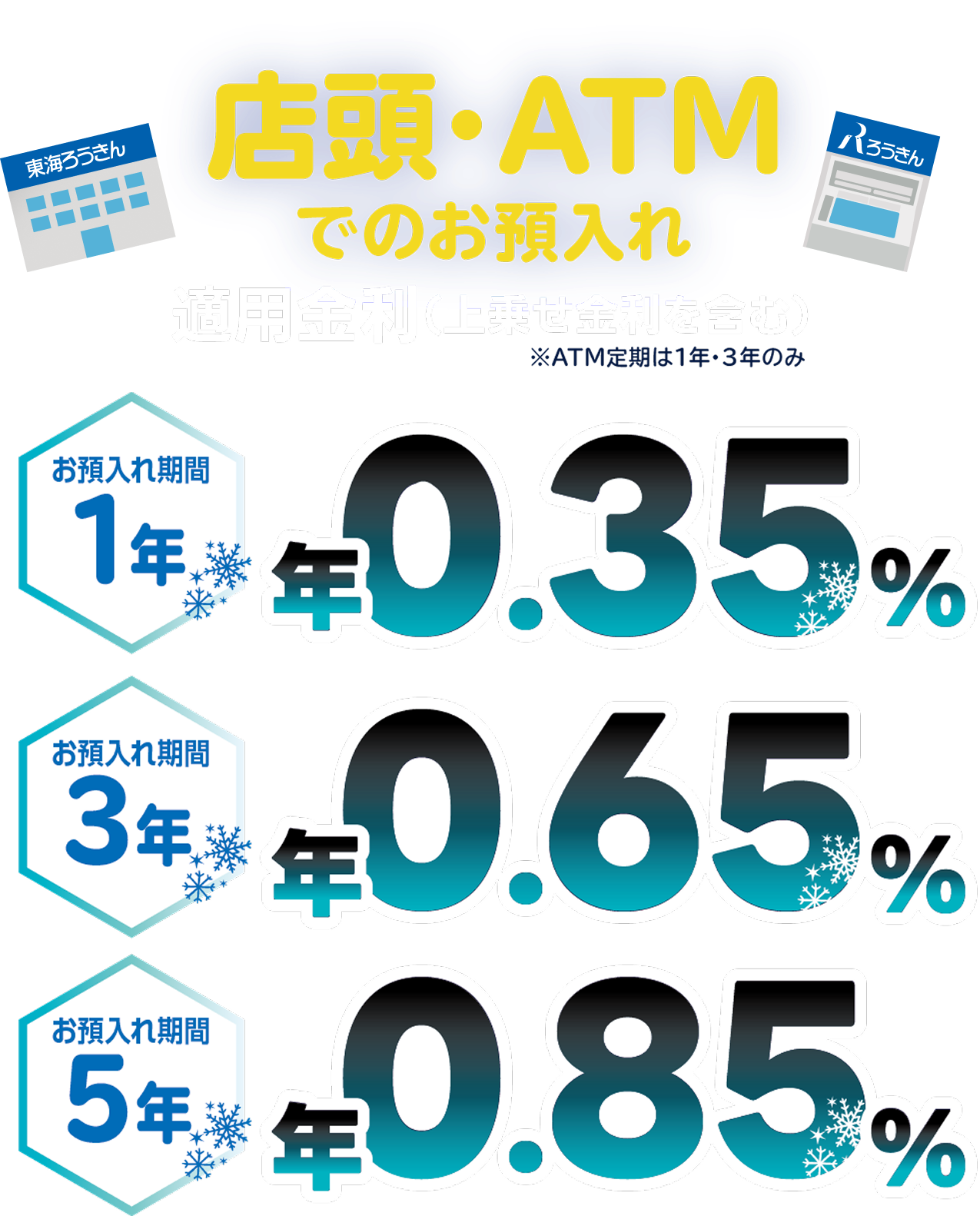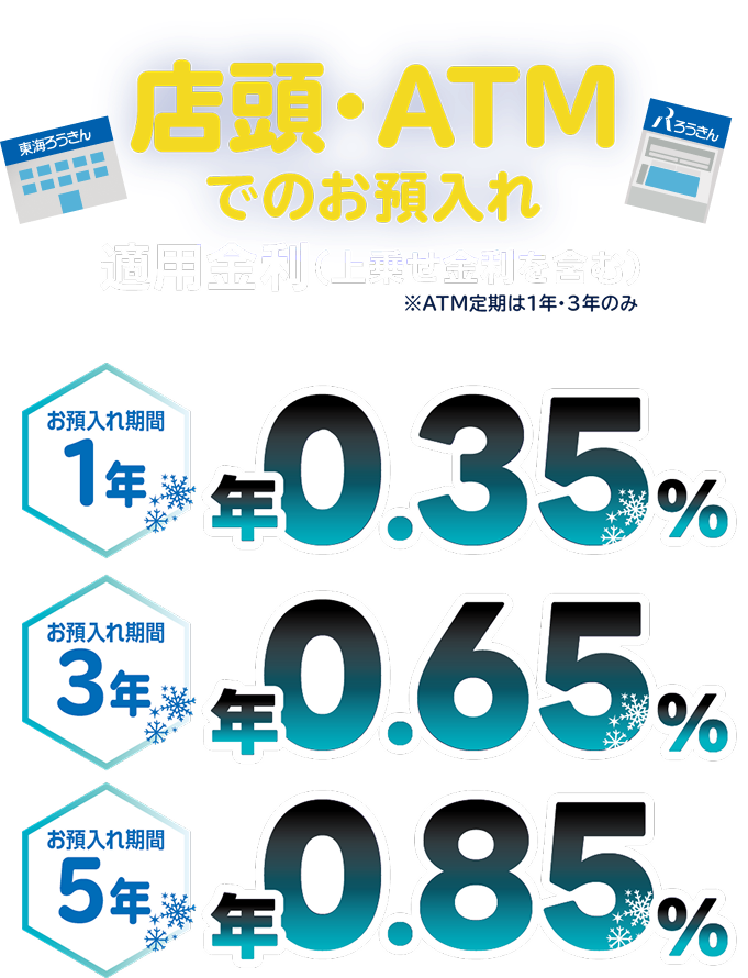 ※ATM定期預金は全国のろうきんATMにてお預入れいただけます。ただし、東海ろうきんの定期預金口座へのお預入れに限ります。