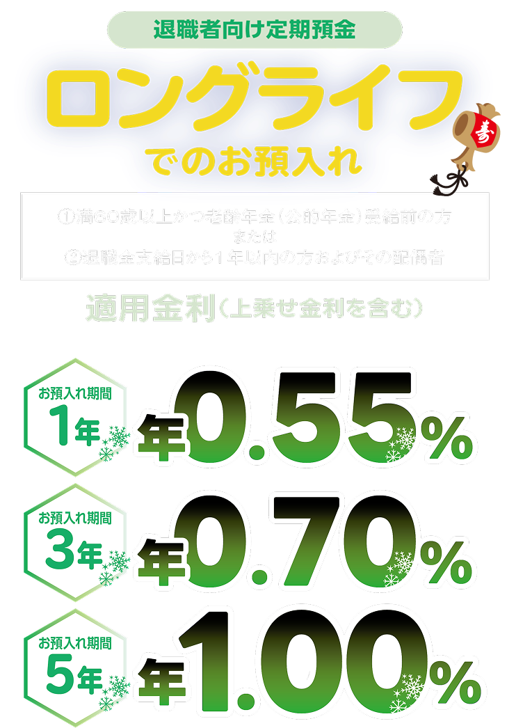 ※スーパー定期、大口定期、ロングライフの詳細につきましてはホームページ、または店頭に商品概要説明書をご用意しております。